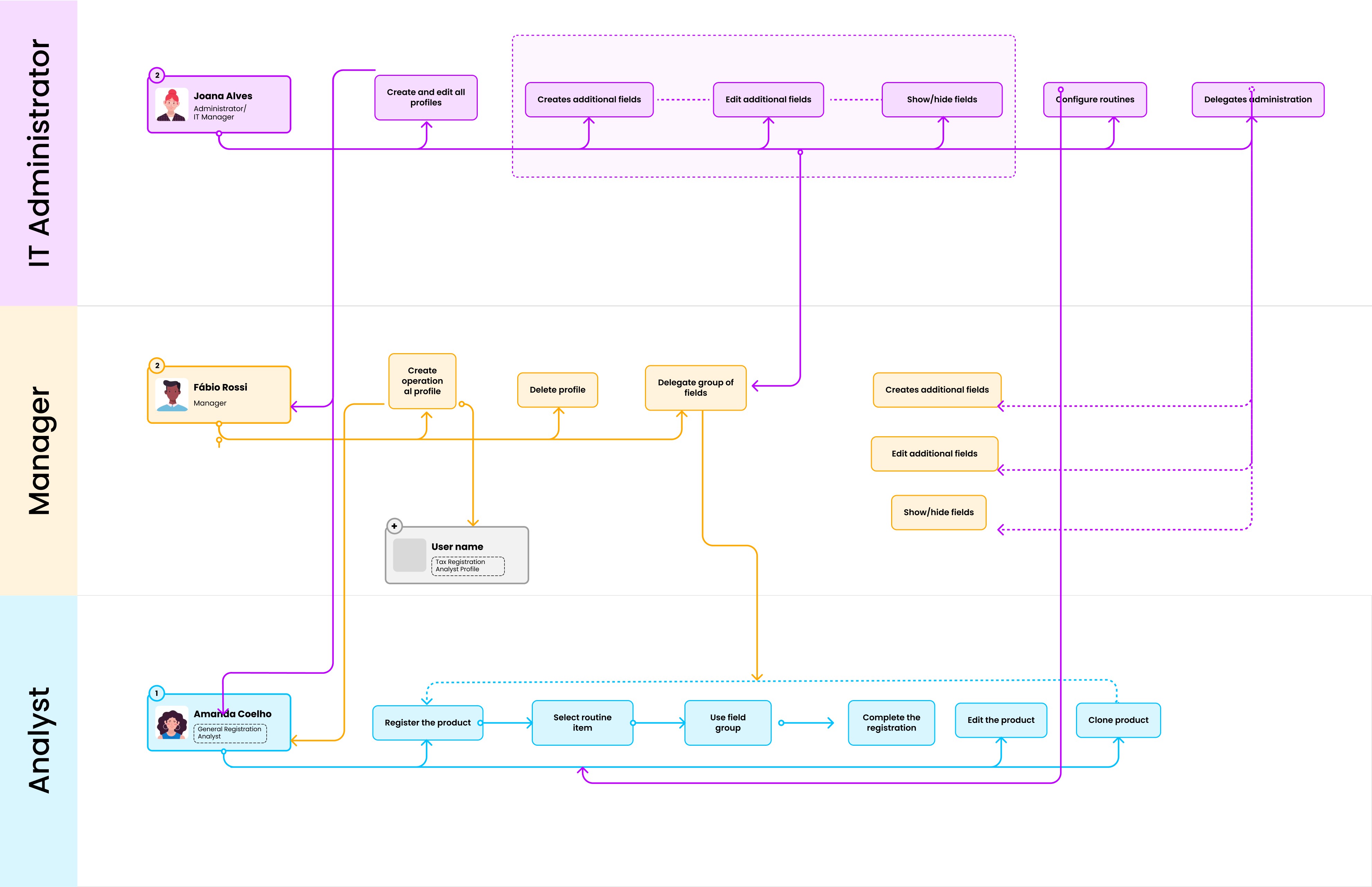 Since this was the first feature I worked on, understanding the system’s architecture was my first challenge. I conducted a deep dive into Winthor’s existing product registration process, mapping out user flows, system logic, and the UI components used throughout the workflow.